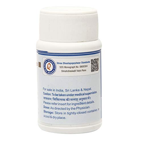 Dhootapapeshwar Shirahshooladri Vajra Rasa - 30 Tab is an Ayurvedic Proprietoery Medicine produced by Shree Dhootapapeshwar Ltd. Kindly refer to the package Information for Usage / dosage.