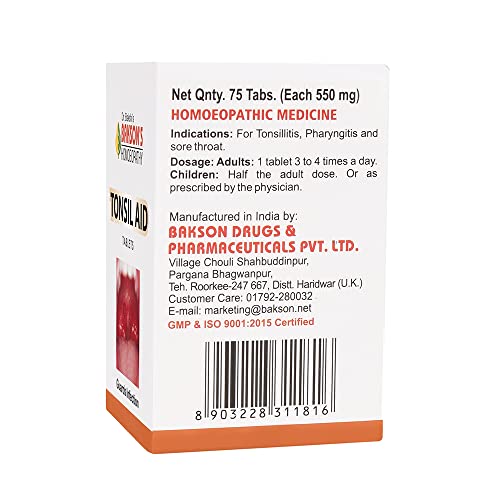 Dr. Bakshi's BAKSON'S HOMOEOPATHY Tonsil Aid | Helps Relieve Tonsil Pain & Inflammation, 75 Tablets