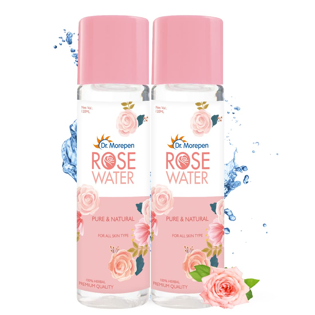 Dr. Morepen Rose Water - Pure & Natural | 100% Herbal, High in Vitamin A & C, Good For All Skin Types | Natural Rose Water - Pack of 2 (120 ml each)
