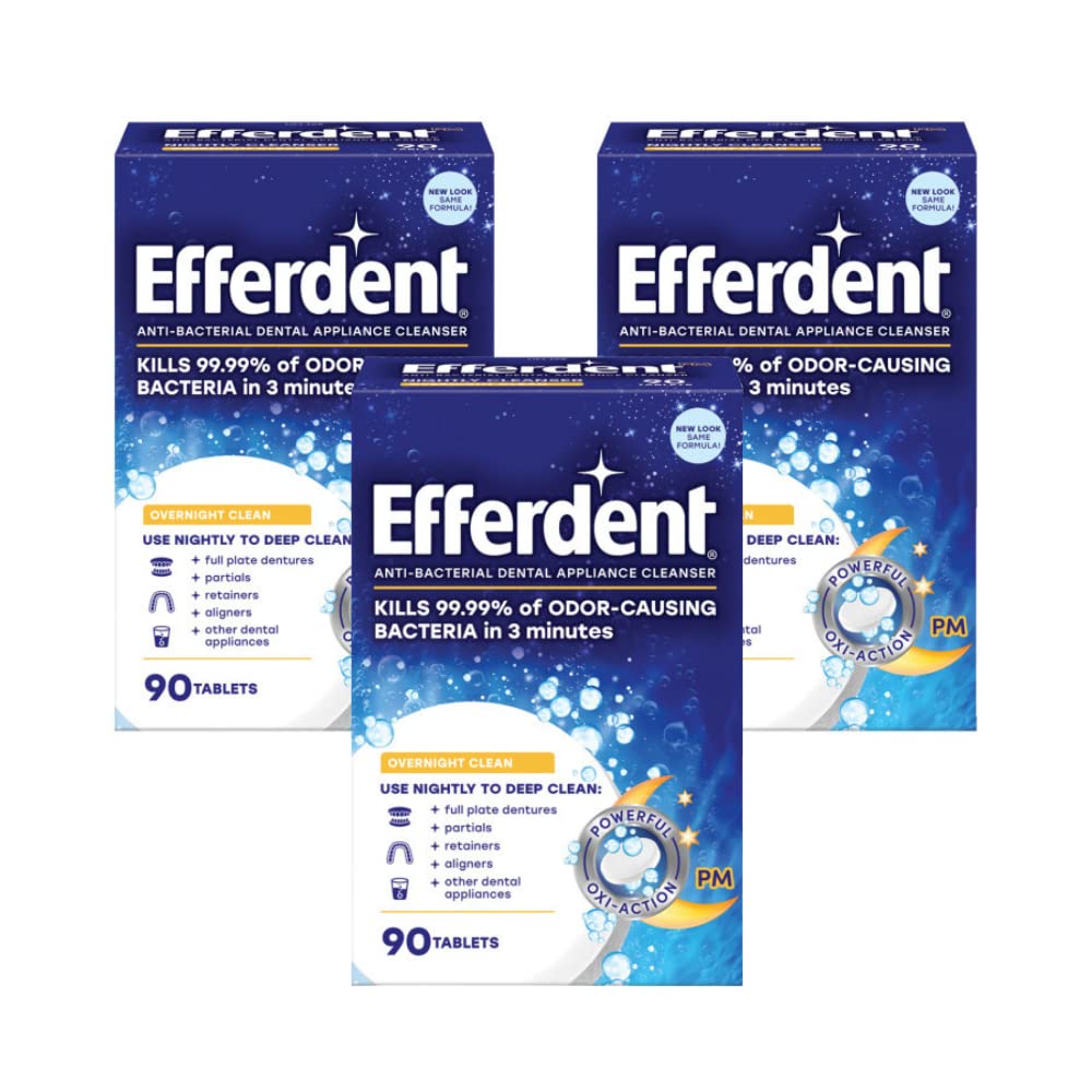 efferdent PM Overnight Anti-Bacterial Denture Cleanser Tablets 90 ct. (Pack of 3)