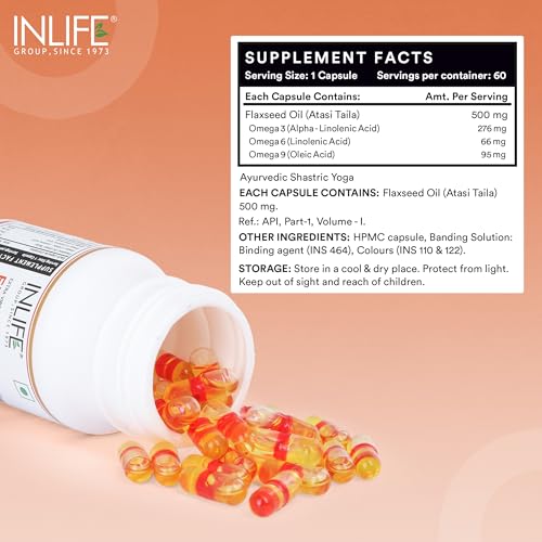 INLIFE Flaxseed Oil liquid filled hard shell vegetarian capsules are manufactured to Quality standards. Flaxseed oil is one of the best vegetarian sources of omega - 3 fatty acids found in nature. The oil used is extra virgin cold pressed flaxseed oil to get the maximum benefit from this amazing natural source of omega 3. It is a rich source of omega 36 and 9 essential fatty acids and phytonutrients. Flaxseed oil helps promote overall well being. Suggested usage: As a health supplement take 1 capsule 3 times a day after meals or as directed by a healthcare professional.