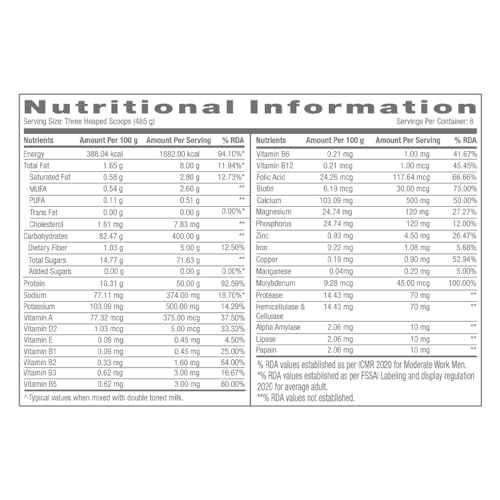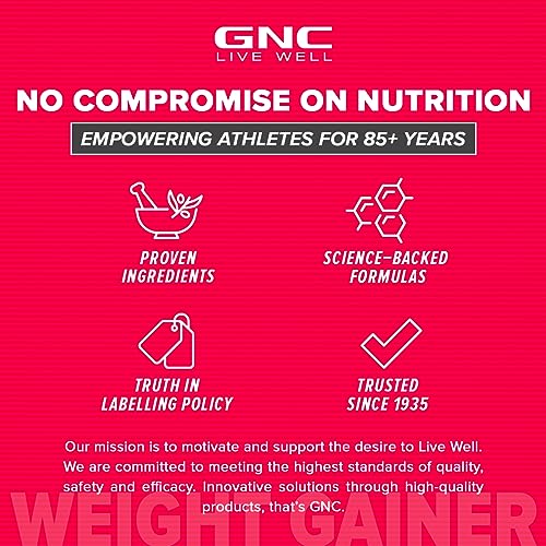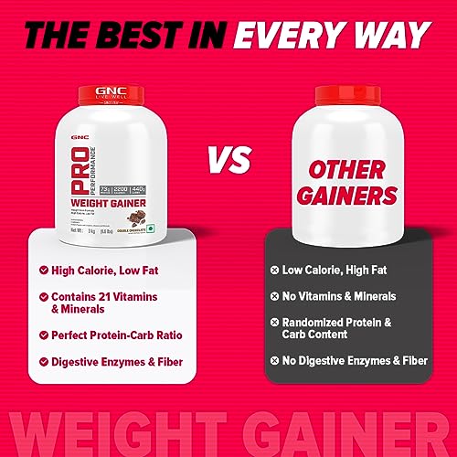 Get that perfect Greek Godâlike physique with GNC Pro Performance Weight Gainer. Its single serving contains a well-balanced blend of 2200 calories 73g protein and 440g carbs to help gain weight at all the right places and build a good muscular profile. In addition the BCAAs in the formula help stack on more lean muscle mass and minimise exhaustion while working out. This weight gainer contains Calcium Caseinate & Maltodextrin to promote faster muscle recovery and easily absorbable Medium Chain Triglycerides (MCT) to get your body ready for any heavy fitness session. Furthermore it is enriched with essential vitamins and minerals to support your body's crucial functions. This formula has special digestive enzymes and dietary fibre which makes it easy on the stomach. It has zero added sugar artificial colours and preservatives to align with your health goals. Plus GNC Weight Gainer is tested for banned substances by a world-class anti-doping lab for assured safety.