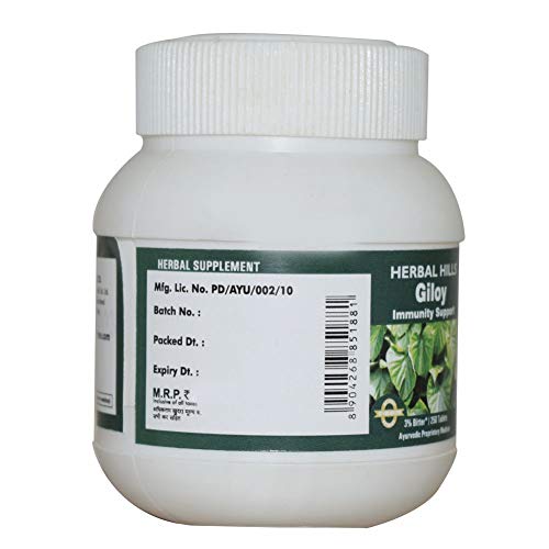 HERBAL HILLS Guduchi Tablets Ayurvedic Giloy Tablets (Tinospora cordifolia) 250 Tablets to improve Immunity