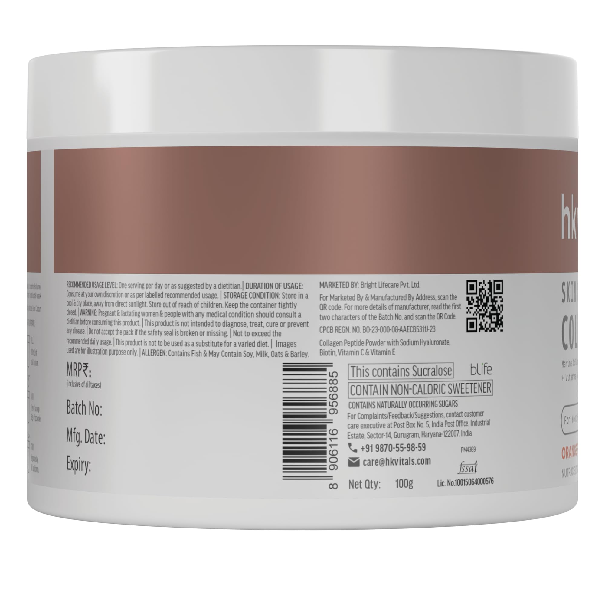 COLLAGEN SUPPLEMENTS FOR WOMEN AND MEN: HealthKart hk vitals Collagen Supplement is a comprehensive formula containing ingredients that help maintain skin hair and nail health. It contains marine collagen (TITAGEN-Fish Collagen Peptide) Vitamin C Vitamin