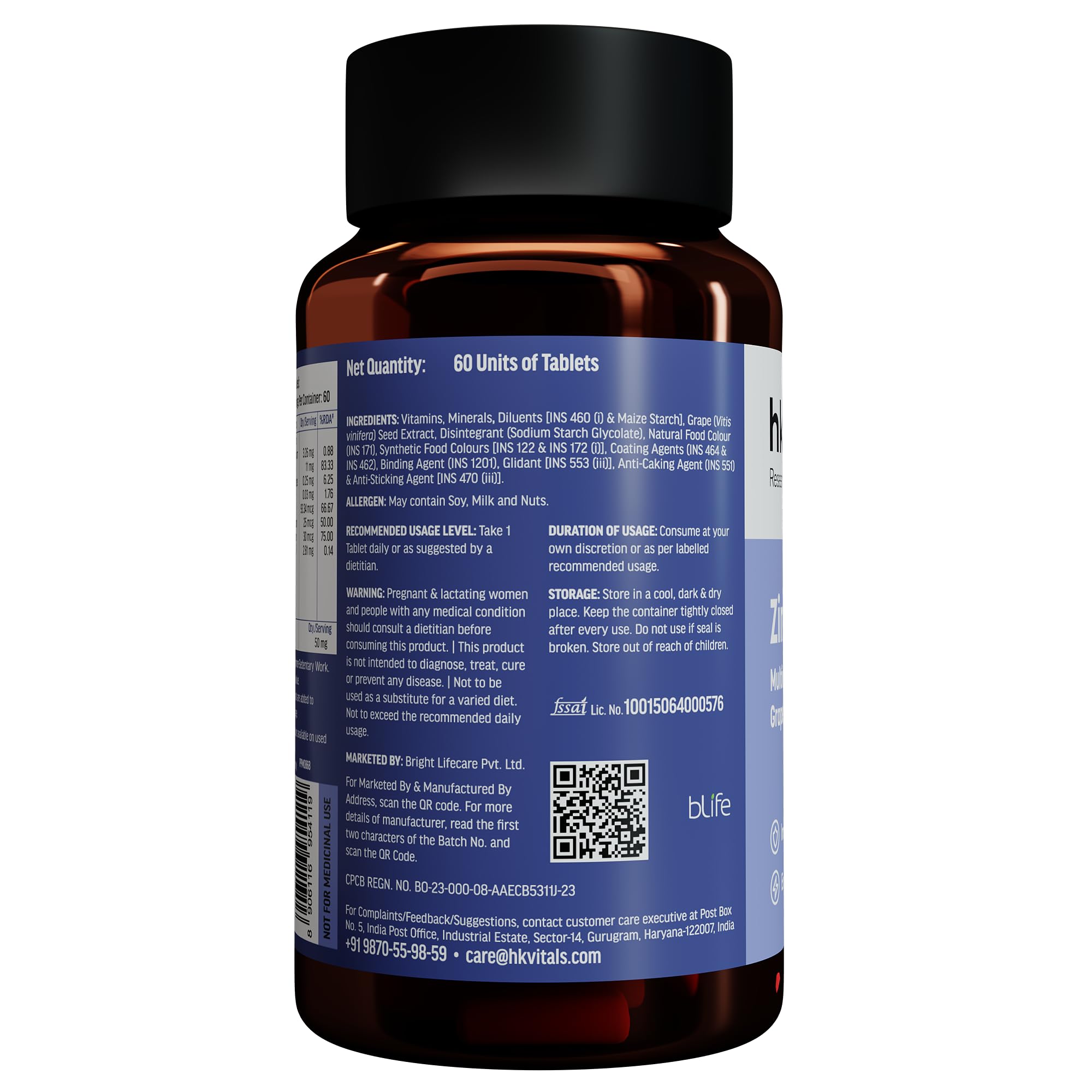 HealthKart hk vitals Zinc Supplements (60 Tablets) | With Vitamin C Vitamin D3 Multivitamin and Multimineral | Immunity Boosters For Adults
