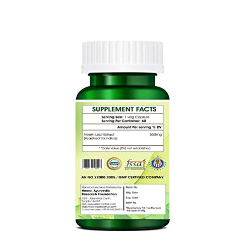 Heera Ayurvedic Research Foundation NEEM EXTRACT 60 PCS.Veg Capsule (500mg)