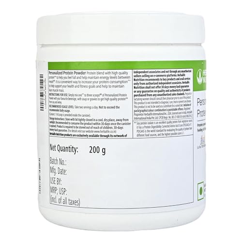 Contains Herbalife Personalised Protein Powder 200 g Helps build muscle mass in the body .