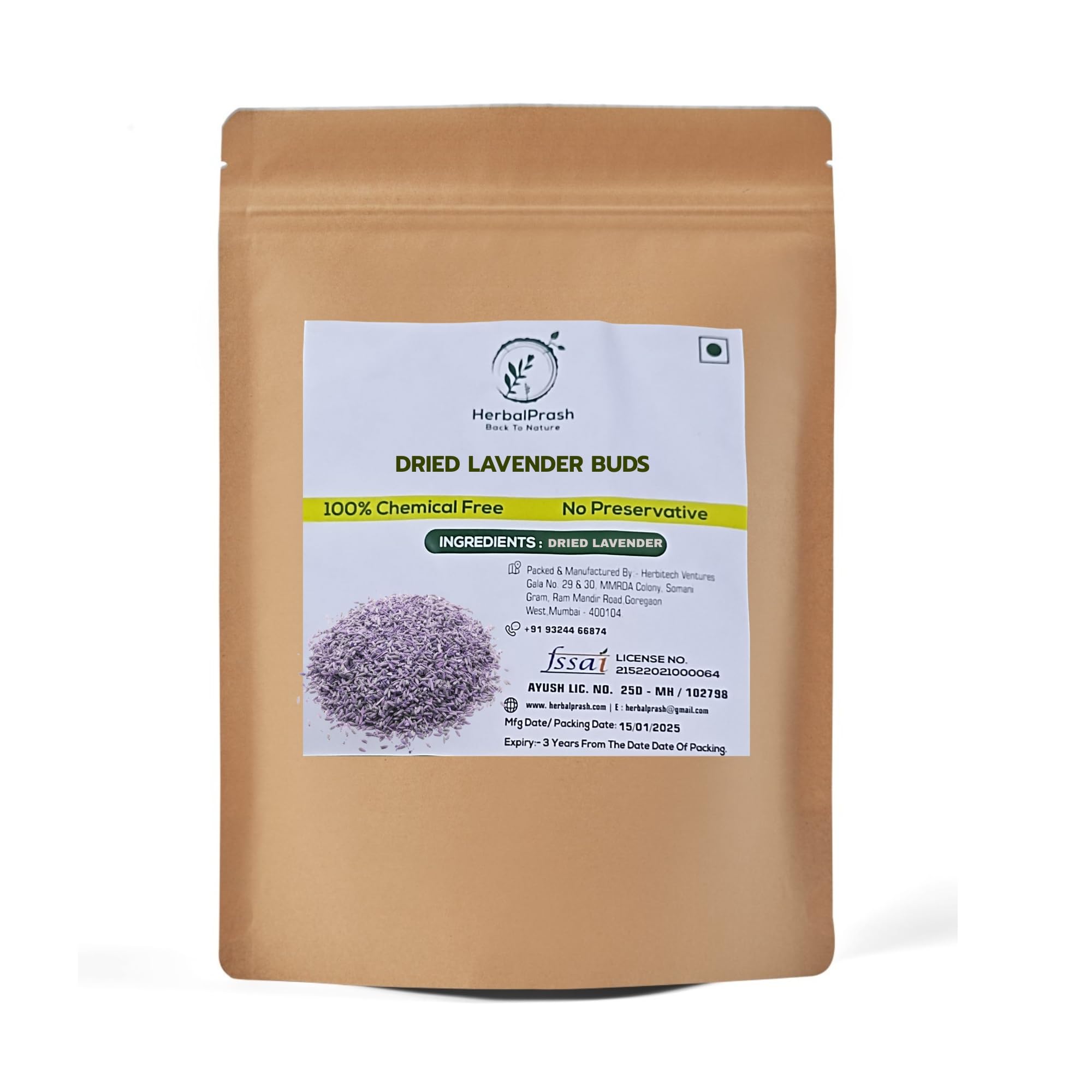100% Natural & Sun-Dried Premium Quality Lavender! HerbalPrash Lavender Buds are carefully handpicked naturally sun-dried and free from additives preservatives and artificial colors to retain their natural aroma flavor and therapeutic benefits.