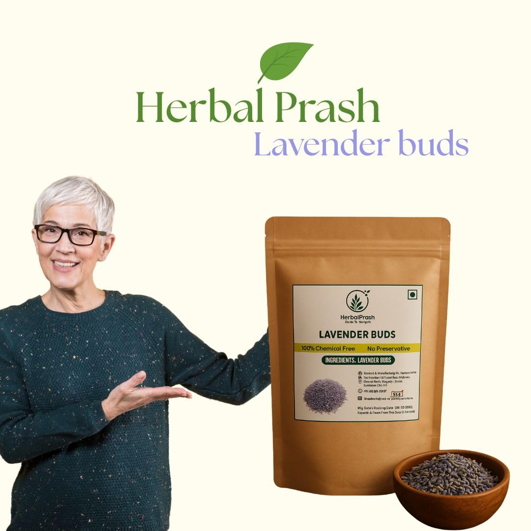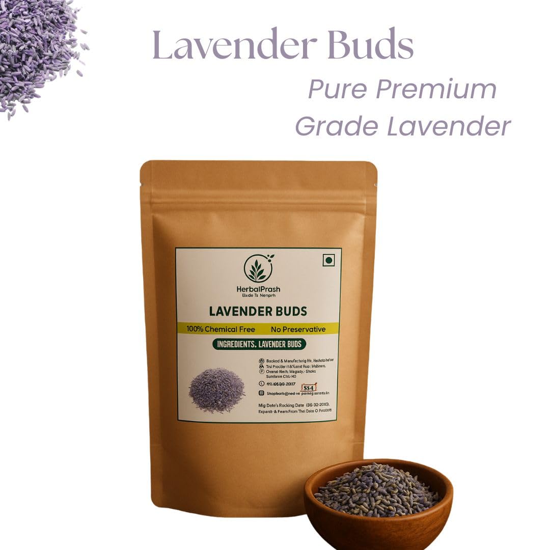 HerbalPrash Dried Lavender Buds - 50g | 100% Natural & Fragrant | Culinary Grade for Tea Baking Aromatherapy & Skincare | Stress Relief & Relaxation