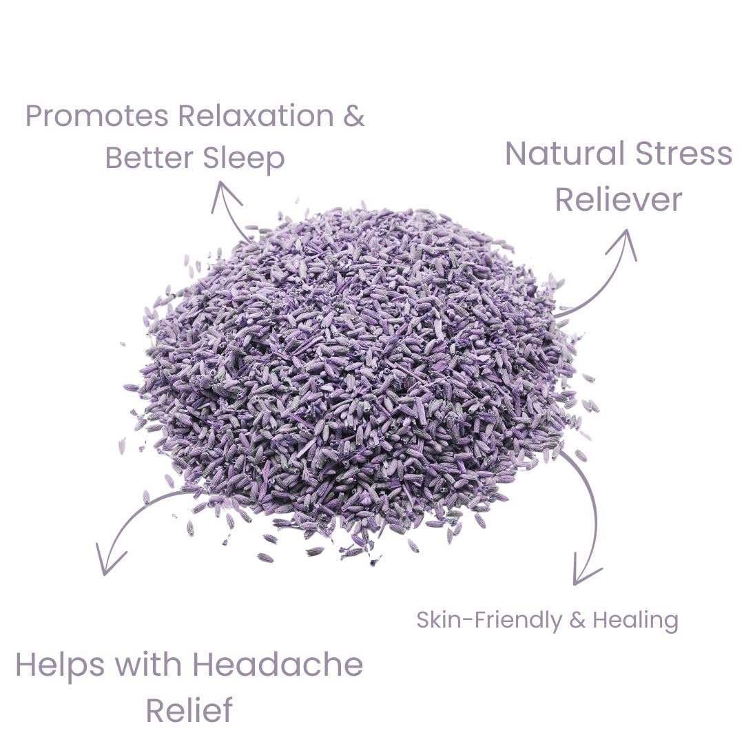 Supports Sleep & Stress Relief Natural Relaxation Herb! Lavender is widely used in Ayurveda and herbal remedies for its ability to reduce stress promote relaxation and improve sleep quality. Place a lavender sachet under your pillow for a restful nightâ