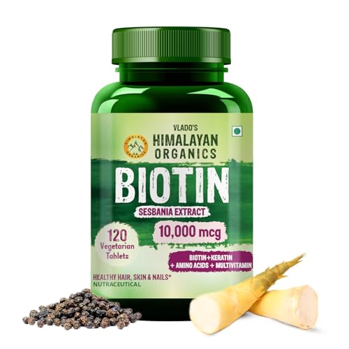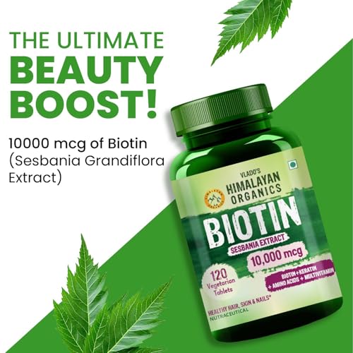 Vlado’s Himalayan Organic Biotin 10000 MCG Supplement For Men And Women With Keratin+Amino Acids+Multivitamin For Healthy Hair, Skin & Nails -120 Vegetarian Tablets