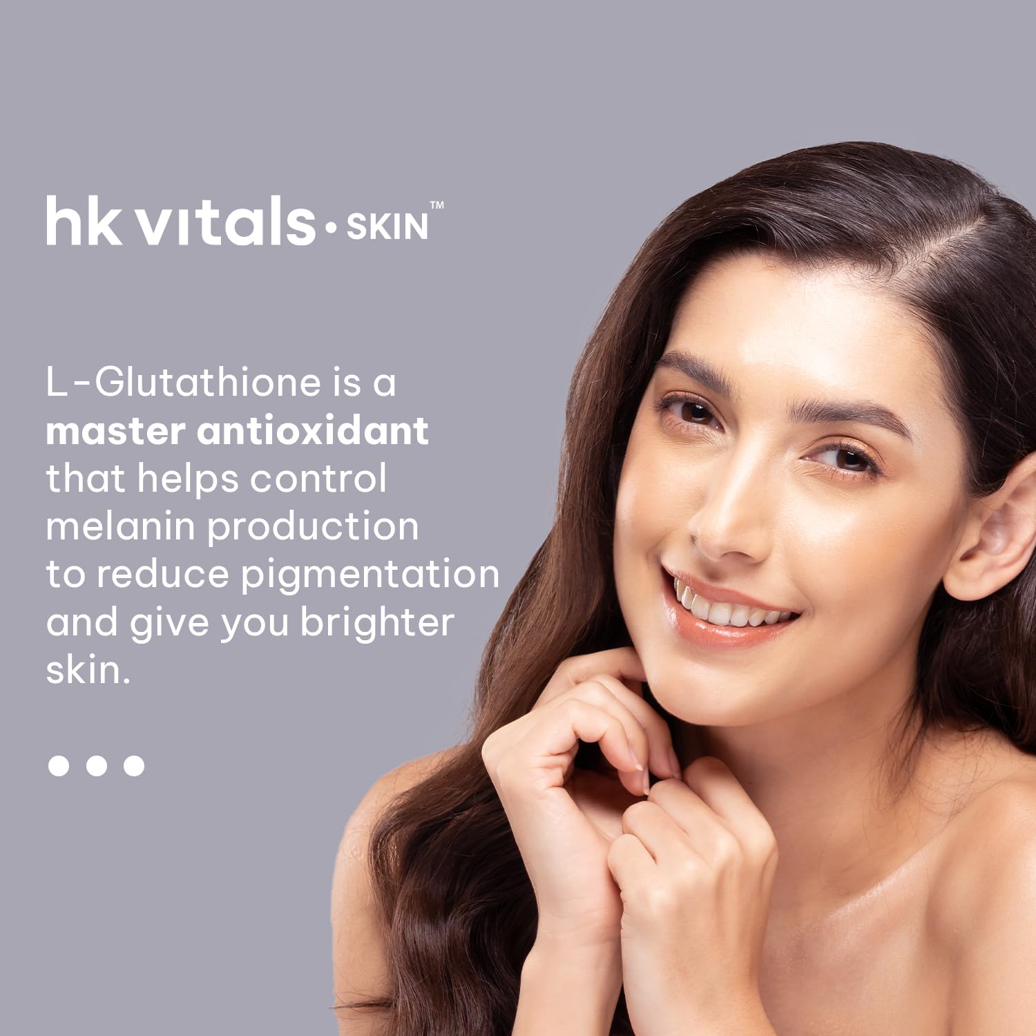 Introducing hk vitals Glutathione Effervescent fizzy tablets that deliver a powerful blend of 600mg L-Glutathione Vitamin C & E. L-Glutathione is a powerful antioxidant which along with Vitamin C & E helps reduce skin dullness and promotes skin glow. Glutathione also helps reduce pigmentation and dark spots by regulating melanin production. One glutathione tablet daily will help improve your skin glow & reduce pigmentation.