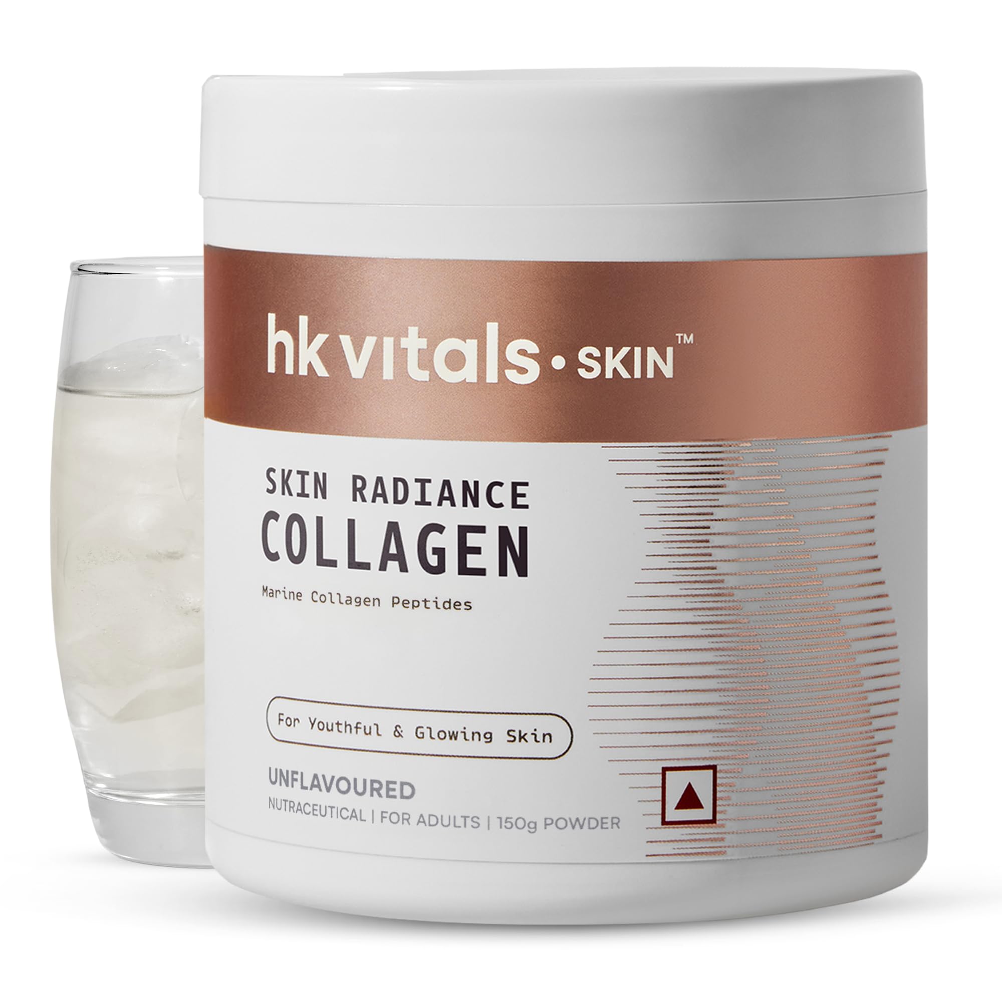 COLLAGEN SUPPLEMENTS FOR WOMEN & MEN: HealthKart hk vitals Skin Radiance Marine Collagen Supplement Powder is a comprehensive formula with marine collagen peptides (TITAGEN â fish collagen) Vitamin C Vitamin E & Biotin - designed to support healthy-look