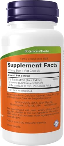NOW Foods, Holy Basil Extract 500 mg, 90 Veg Capsules (Pack of 2)