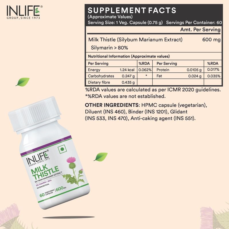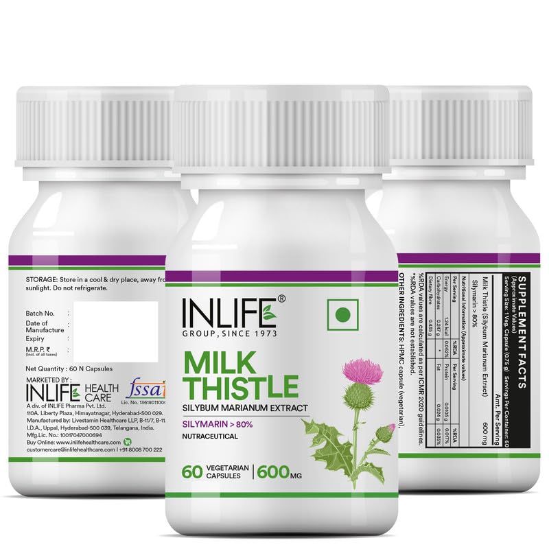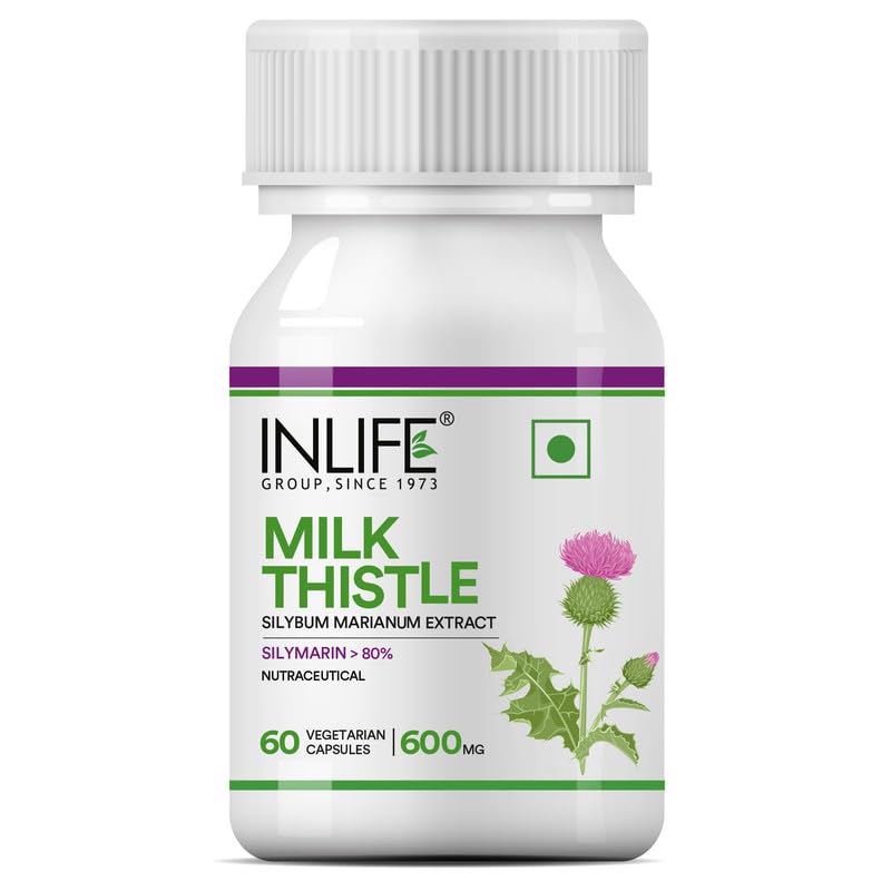 INLIFE Milk Thistle Extract 600mg Capsules | Silybum Marianum Liver Support Supplement | Men and Women - 60 Vegetarian Caps (Pack of 1, 60)