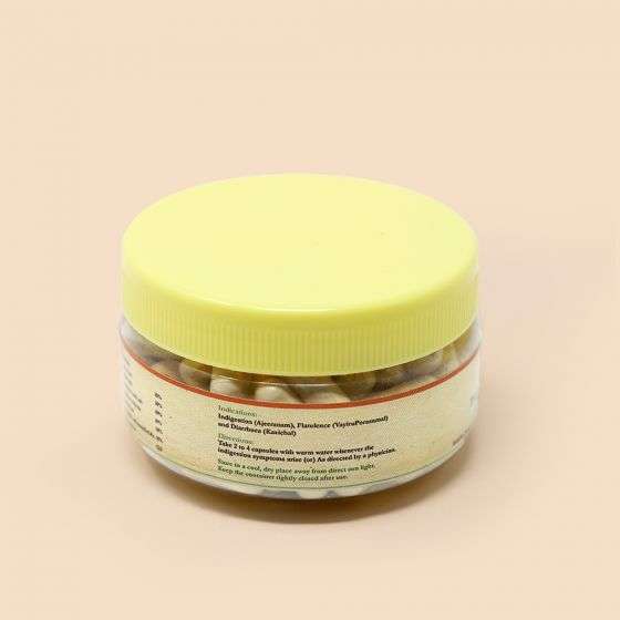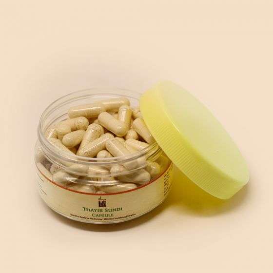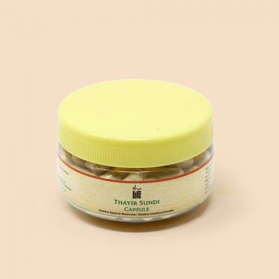 Thayir Sundi choornam is one of the best herbal-mineral formulations mentioned in the Siddha classical texts. The formulation composes of salts and herbal drugs which are used for treating diarrhea and troubles.It isalso available in 20 Caps. packing.Note: These pure vegetarian Caps. are made from 100% plant origin HPMC (Hydroxy Propyl Methyl Cellulose)