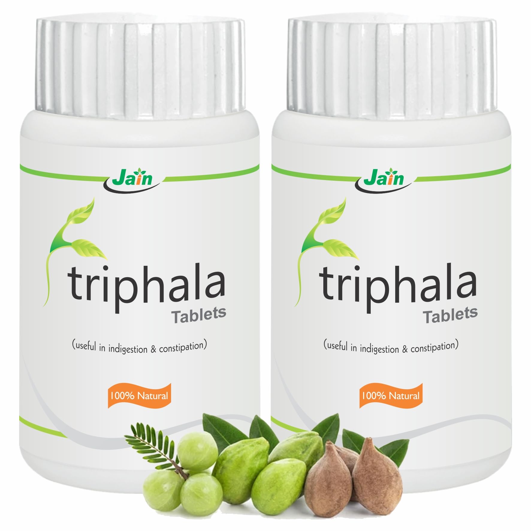 Jain Triphala Tablet 500 mg | Promotes Healthy Guts and Helps Fight Digestive Disorders| Constipation Relief |100% Natural | 100 Tablets (Pack of 2)