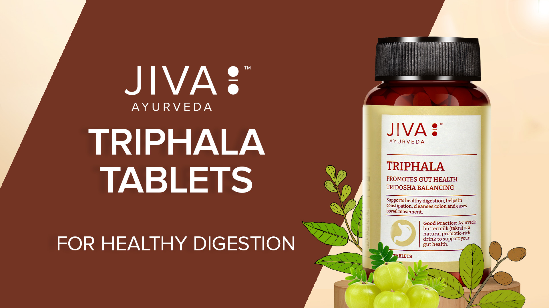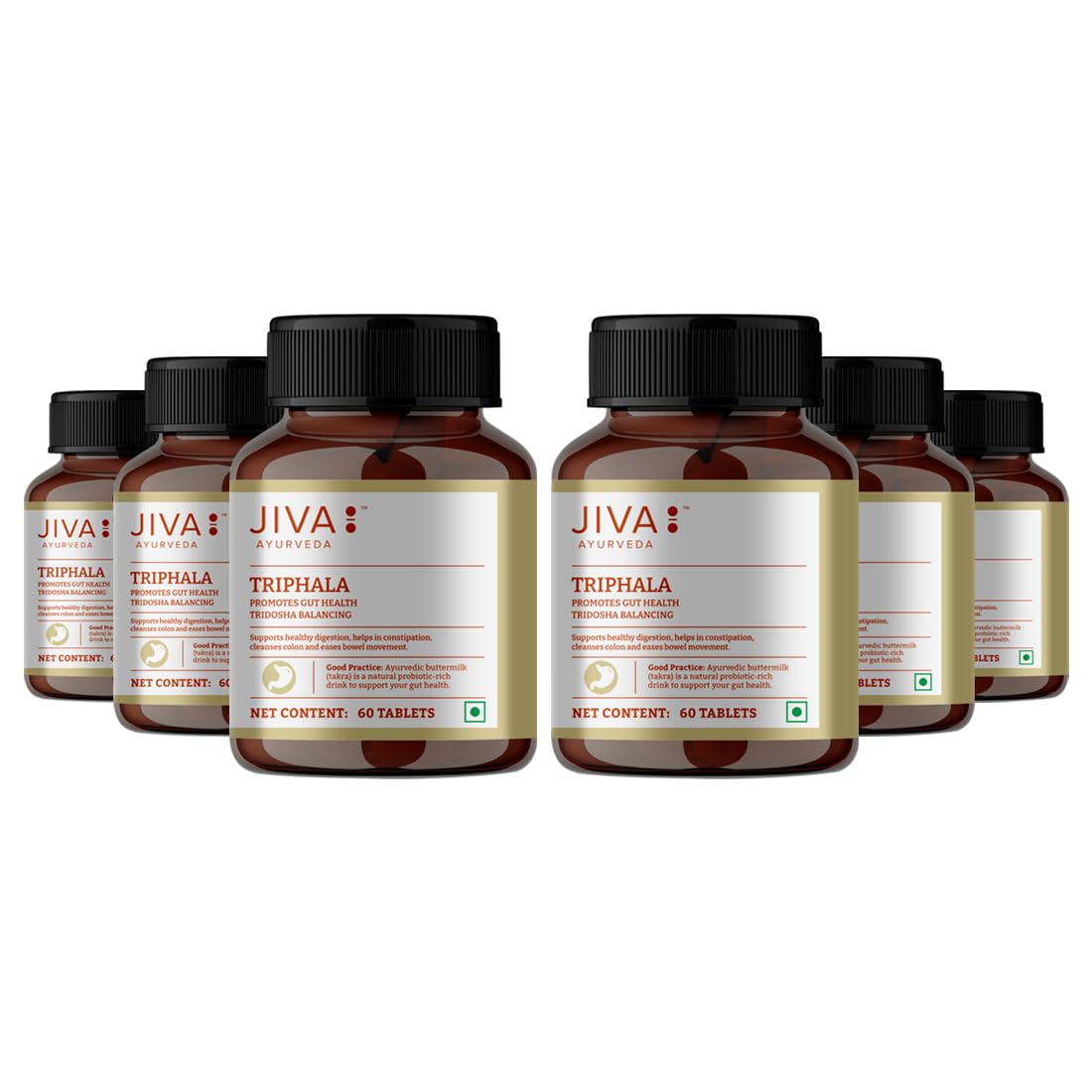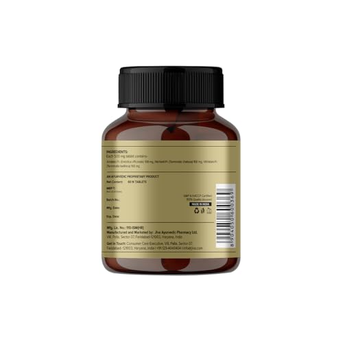 Ingredients: terminalia chebula emblica officinalis terminalia bellirica. Tablets to be consumed with water or as directed by physician. - jiva ayurveda.