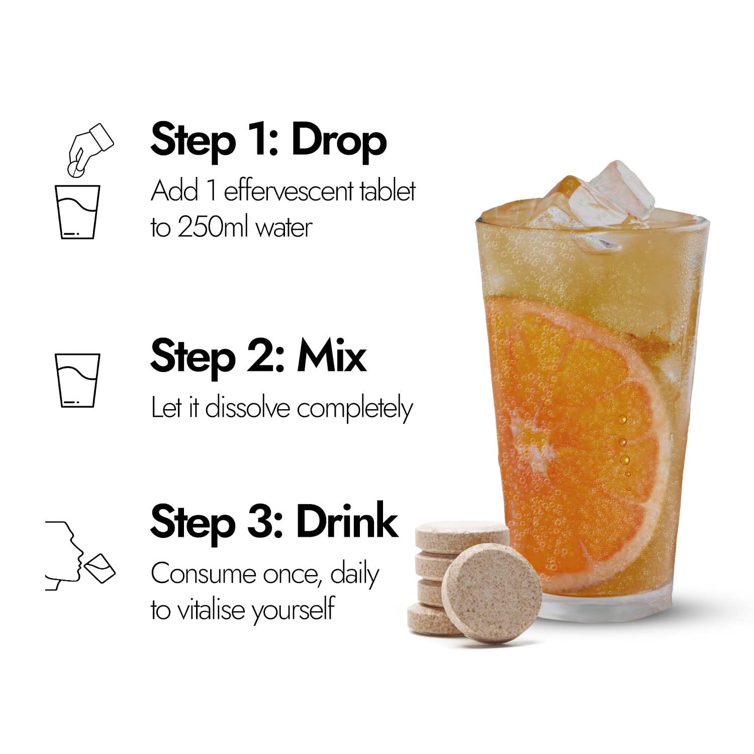 Improved Overall Wellbeing: With the presence of pure shilajit and other powerful Ayurvedic ingredients. Experience improved strength stamina energy levels and immunity. Your Go-to Energy Drink: Gives you a sustainable boost of energy irrespective of the season in a refreshing orange flavour that is convenient to carry and consume anywhere. For Best Results: Consume 1 tablet daily and combine this with a balanced diet & exercise.