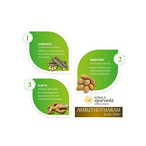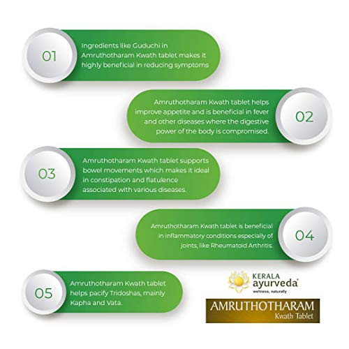 Quantity: 100 Nos; Item Form: Tablet; Amruthotharam Kwath is a classical Ayurvedic formulation that is used to smooth over digestive problems & fever. It has good digestive properties so it helps in relieving appetite loss and constipation associated with