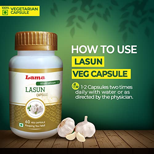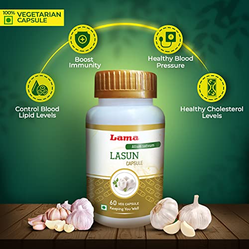 Lama Lasun veg Capsule helps prevent atherosclerosis. It strengthens immune system and helps maintain proper cholesterol level. It helps normalize high blood pressure and reduce cough & cold. It contains no preservatives no added flavour no artificial colour and is GMO free.