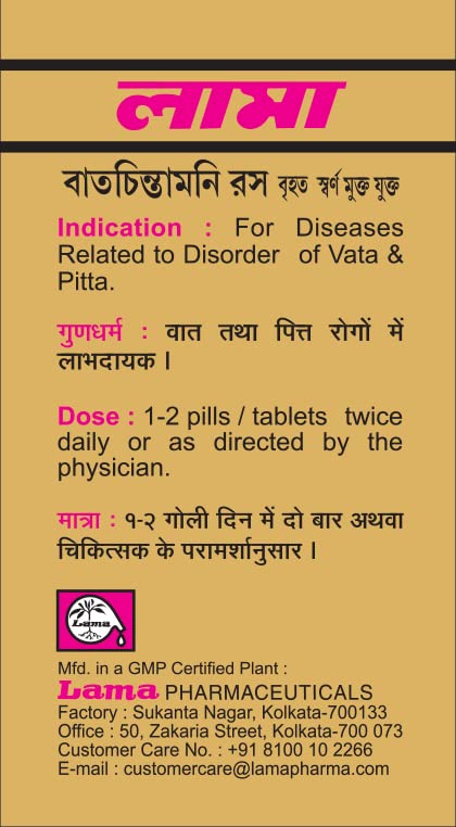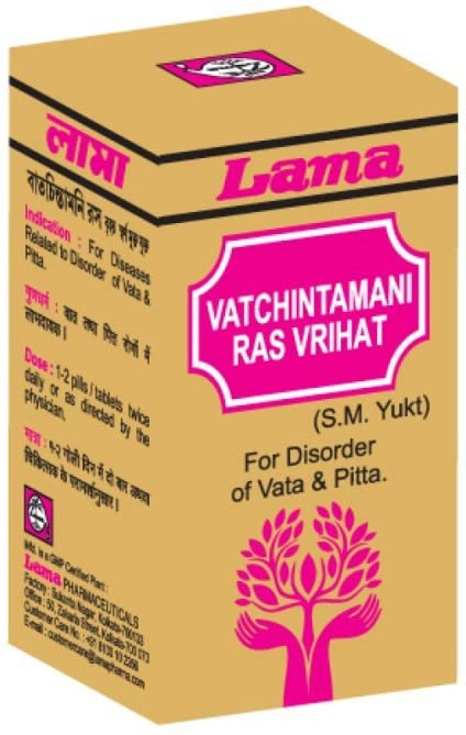 Lama Vatchintamani Ras with Gold and Pear is useful for Vata Dosha imbalance disorders such as Paralysis facial palsy. It is an excellent rejuvenative and anti-aging Ayurvedic formulation.