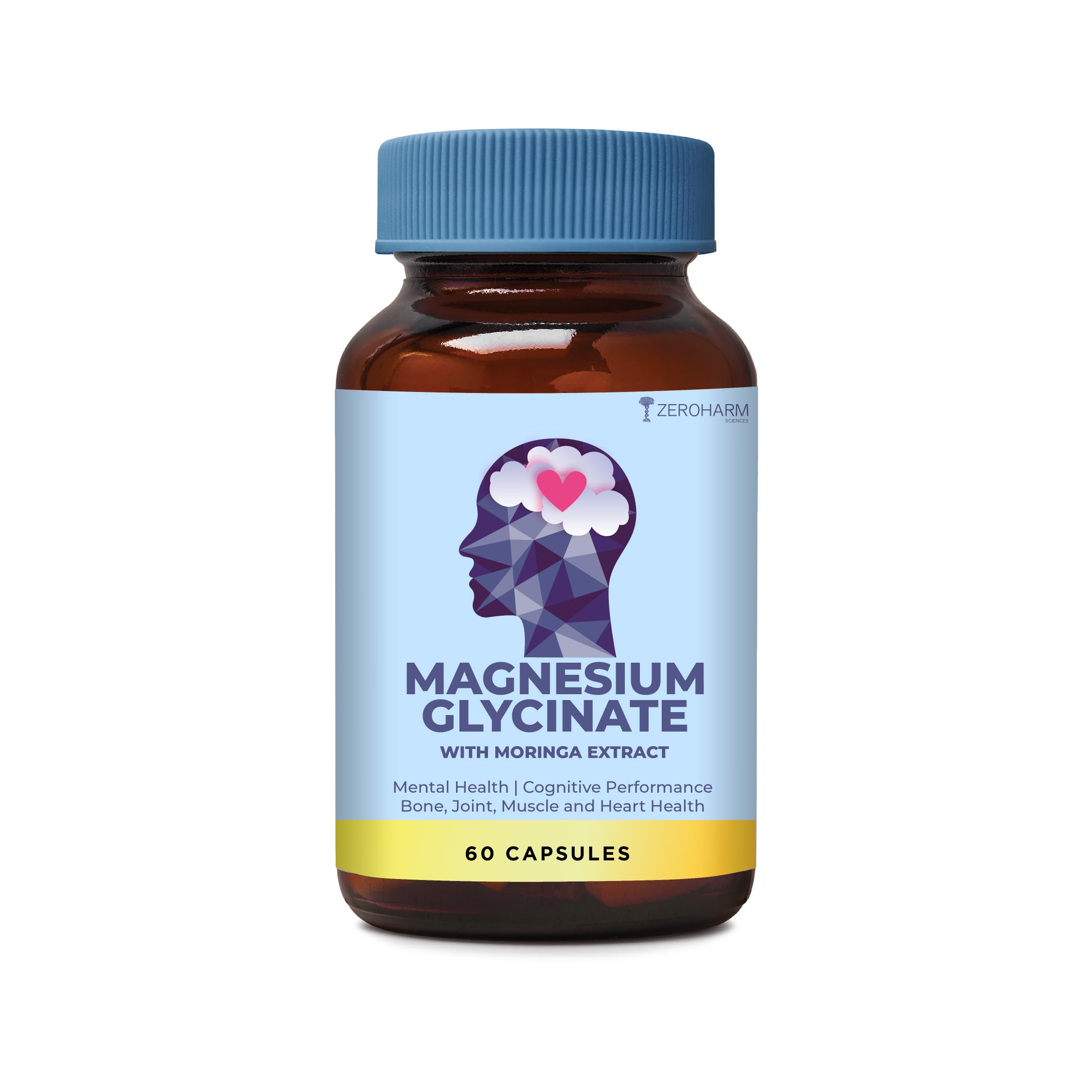 HomeHealth & PersonalDiet & NutritionHealth SupplementsMagnesium Glycinate 1100mg with Moringa Extract - For Stress Sleep Muscle Relaxation Bone & Heart Health - High Absorption - Plant-Based Supplement for Men & Women - 60 Veg Capsules - By ZEROHARM