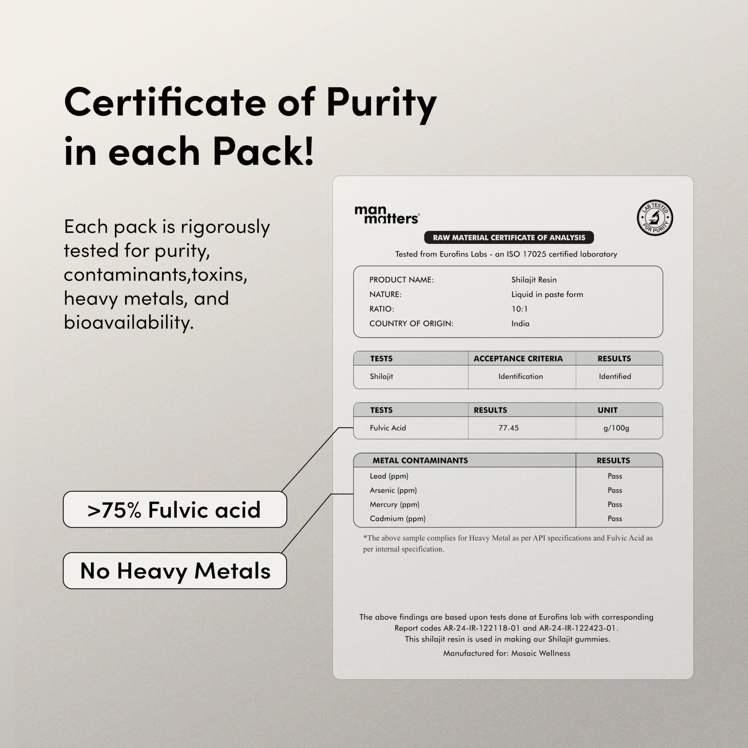 Man Matters Pure Himalayan Shilajit/Shilajeet Gummies with 75% Fulvic Acid & KSM 66 Ashwagandha | Boosts Stamina Strength & Improves Energy Levels | No Added Sugar | Pack of 60