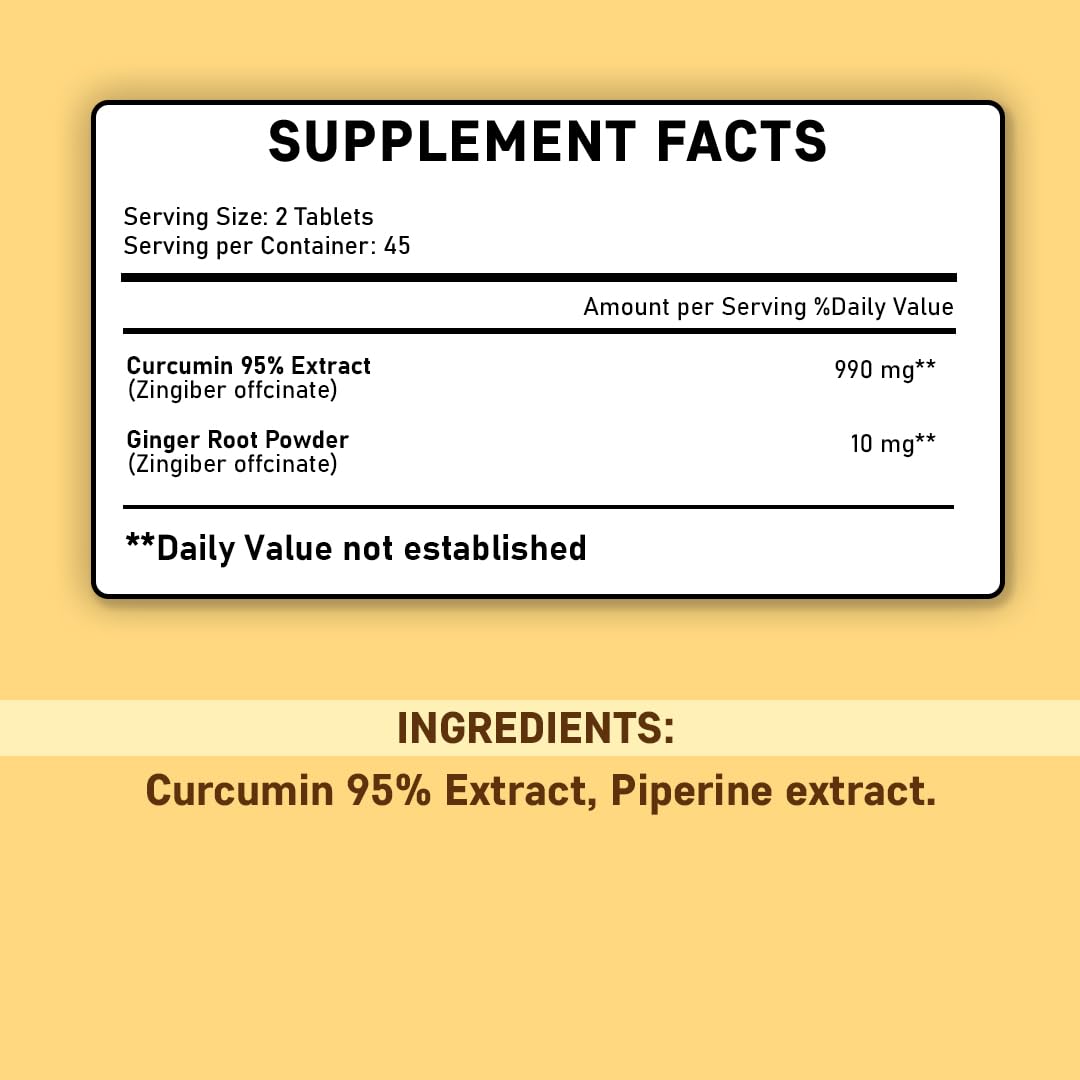 High-Potency Extract: Contains 95% curcuminoids the most active and beneficial compounds in turmeric for maximum effect.