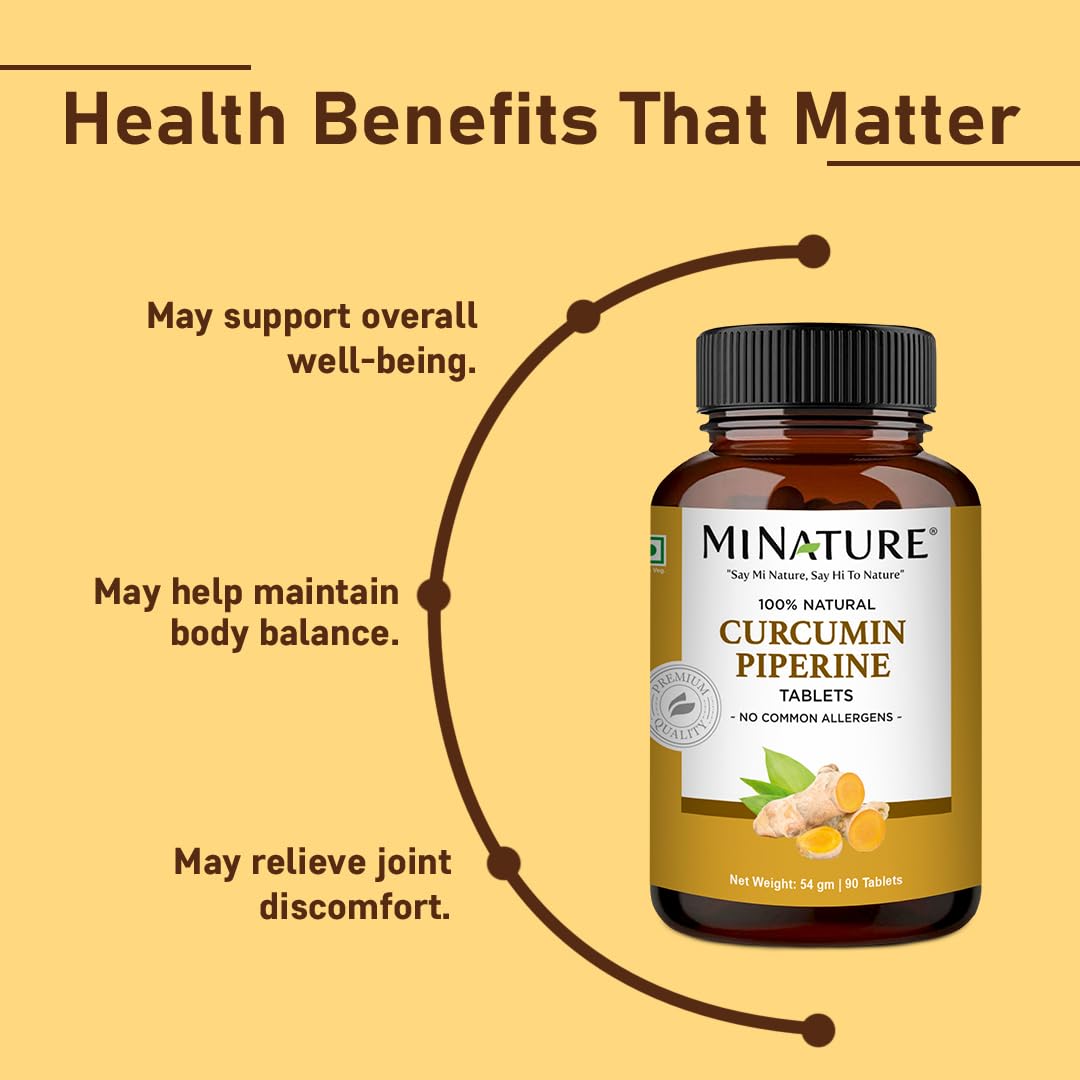 mi nature Curcumin Peperine Tablet | 95% Curcuminoids Extract with Peperine Extract | Acts Immune Booster |90 Tablet 54Gram 500mg