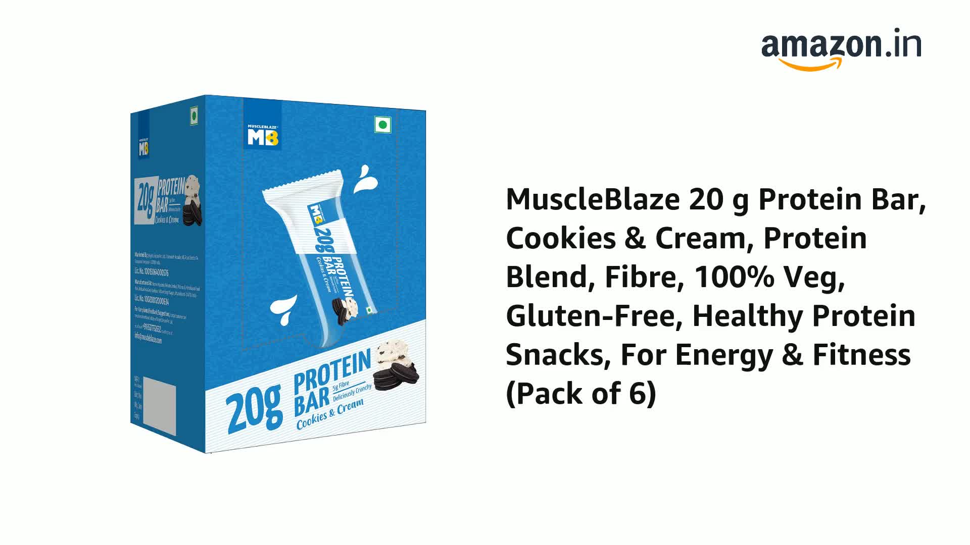 • CRUNCHY COOKIE: Shop for healthy protein snacks with MuscleBlaze 20 g Protein Bar which includes cookie crumbs & experience the ultimate crunch in every bite