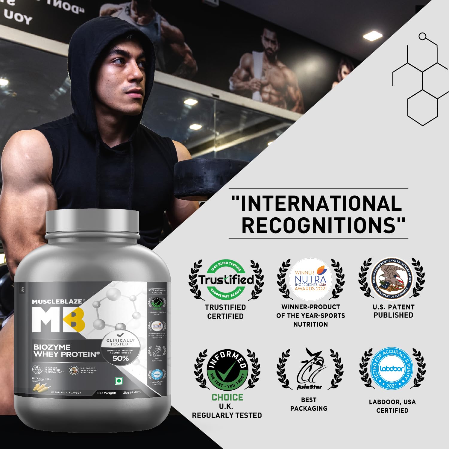 • WINNER PRODUCT OF THE YEAR SPORTS NUTRITION: MuscleBlaze Biozyme Whey won product of the year in the sports nutrition category at the NutraIngredients Award 2021 in Singapore. Testimony of the research quality & innovation behind the Biozyme series