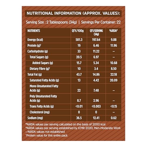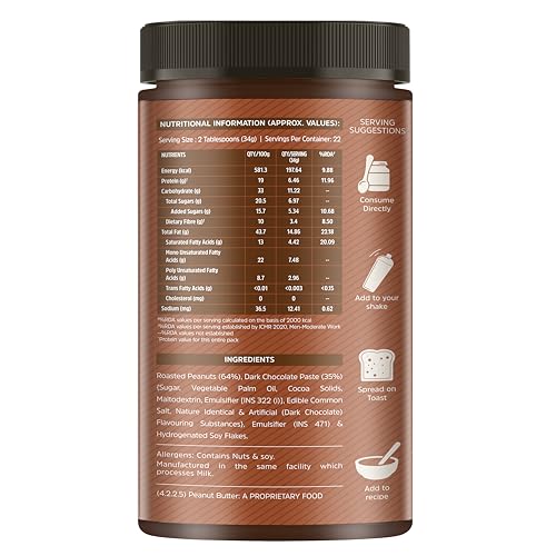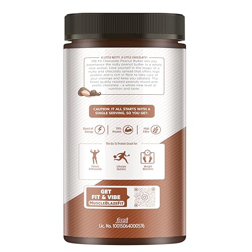 • FIBRE-RICH & TRANS-FAT-FREE SPREAD: This MuscleBlaze Peanut Butter Chocolate flavour contains 3 g dietary fibre that supports normal bowel movements and weight management. No trans fat helps manage cholesterol