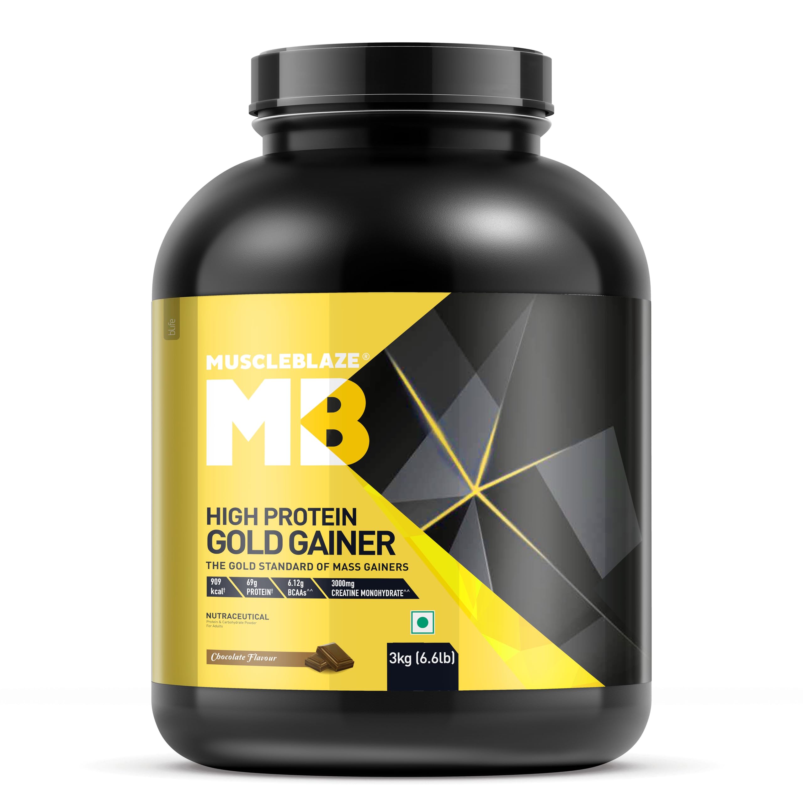 MuscleBlaze High Protein Gold Gainer (Chocolate, 3kg / 6.6lbs, 30 Servings)