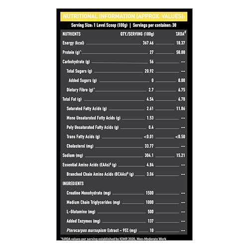 • BOOSTS PERFORMANCE: This mass gainer provides 3000 mg of creatine monohydrate that helps increase strength & power and 2000 mg of MCT that helps burn fat to deliver more energy to the body. MCT also helps increase appetite