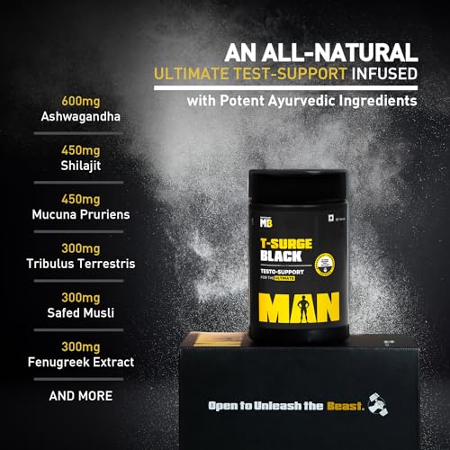 • THE NATURAL TESTO SUPPORT: Amp up your T-levels with MuscleBlaze Koshaveda T-Surge Black. An all-natural supplement infused with 12 potent ayurvedic ingredients for the ultimate testo support. Crafted to enhance men's performance and bring forth the best