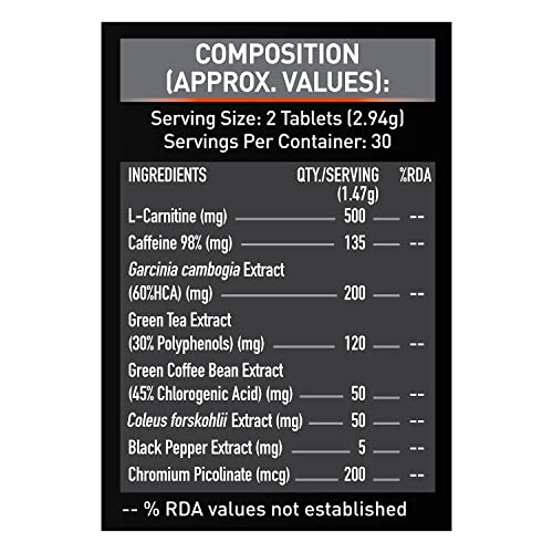 • BOOSTS METABOLISM- These fat burner tablets contain Coleus Forskohlii Chromium Picolinate & Black Pepper to help build lean body mass oxidate fatty acids & boost metabolism