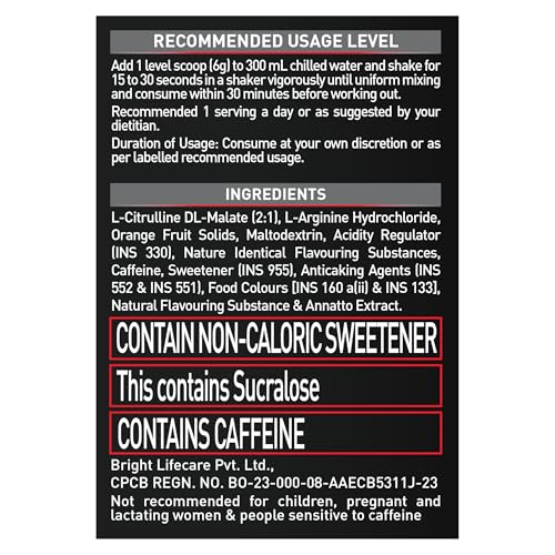 • POWER-PACKED FORMULA: Transform your fitness workouts with MuscleBlaze Pre-Workout 200. Every 5g serving contains 2200mg L-Citrulline & 1500mg L-Arginine to enhance blood flow in the nerves & boost pump