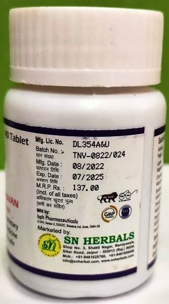 1-2 Tab.. twice a day before or after food or as Directed by Ayurveda Doctor