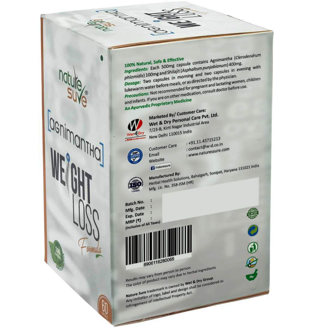 Nature Sure Agnimantha Weight Loss Formula for Men and Women's (60 Capsules Each) (Pack of 1 (60 Capsules))