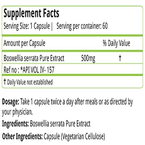 Boswellia ( Shallaki) Pure Extract (500 mg) 60 veggie capsule(s)