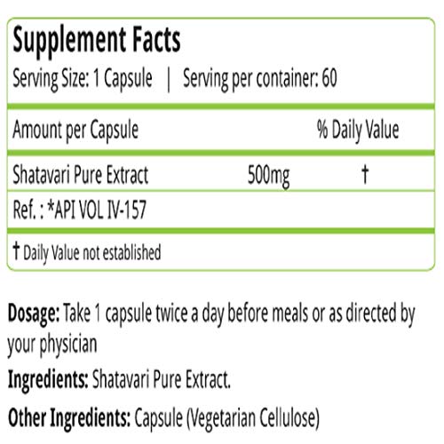 Natures Velvet Lifecare Shatavari Pure Extract 500 mg, 60 Veggie Capsules - Pack of two