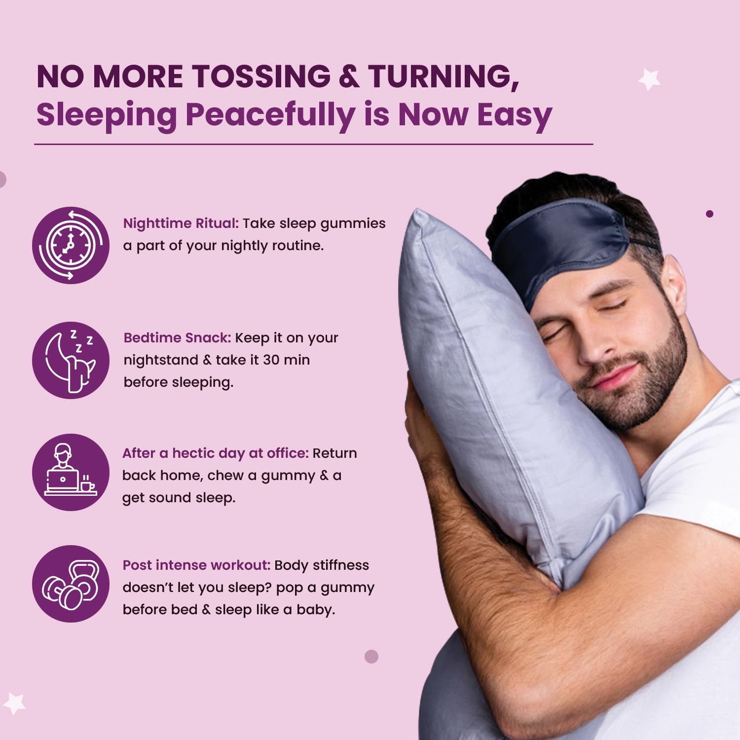 • Non-habit Forming Melatonin Sleep Gummies- Crafted to help you get sound & restful sleep faster.