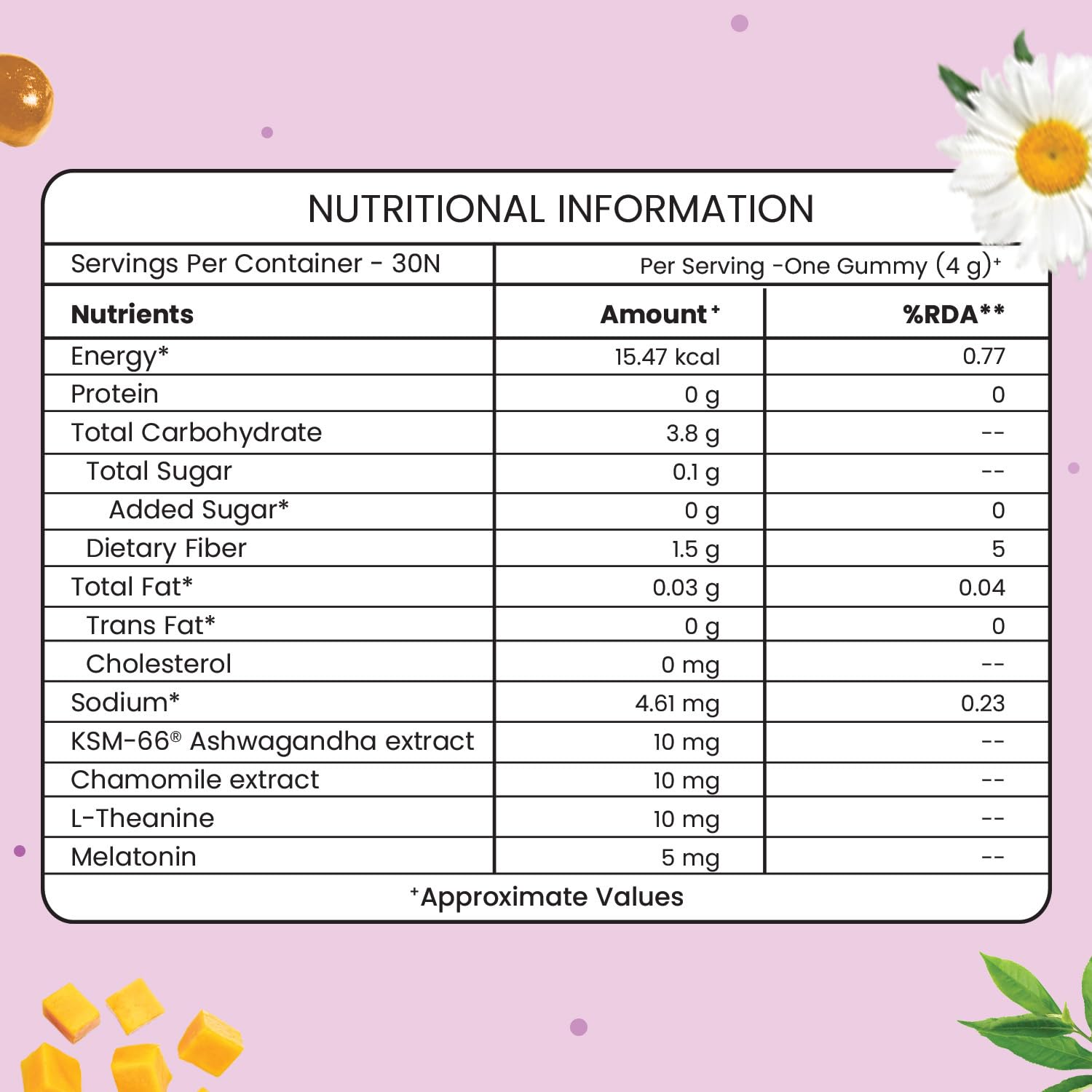 • Stress Relief Sleep Gummies- Chamomile & L-Theanine helps calm mind relax body & reduce anxiety.