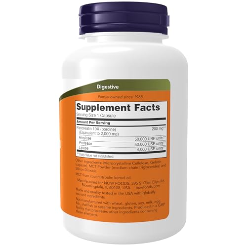 Now Foods Pancreatine 10X - 200mg , Capsules, 250-Count