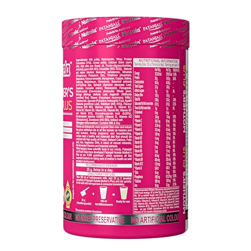 Patanjali Nutrela Mother`s Plus is a scientifically designed high protein high fiber and low-fat preservative-free nutrition health drink for pregnant and lactating mothers to support mother and child health naturally. Mother`s Plus is 100% vegetarian GMO-free gluten-free no added color and formulated as per ICMR guidelines.
