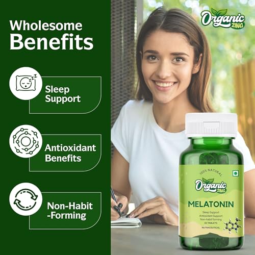 Organic Zing Melatonin Tablets | Improves Sleep Cycle Enhances Sleep Quality & Eases Jet Lag Non-Habit Forming - 60 Tablets