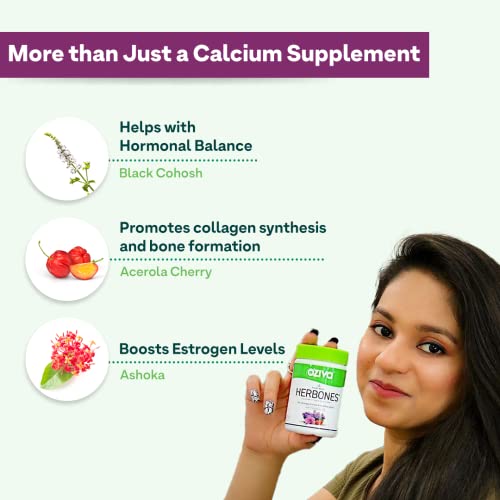 OZiva Plant Based HerBones|Healthy Bones Supplement for Better Bone Health & Bone Strength & Density|With Acerola Cherry & Ashoka for Healthy Bones for Women,Certified Vegan,60 capsules,70 grams
