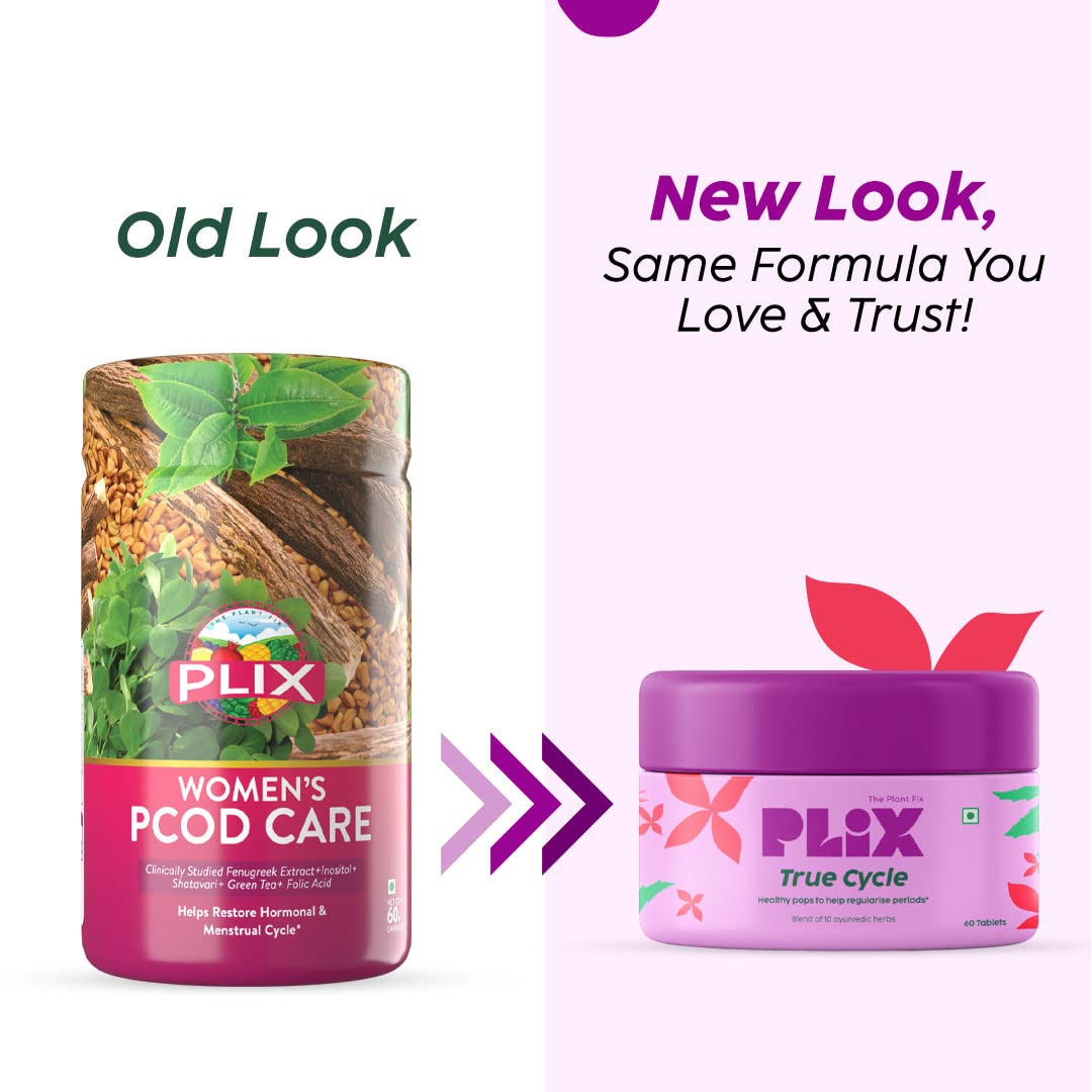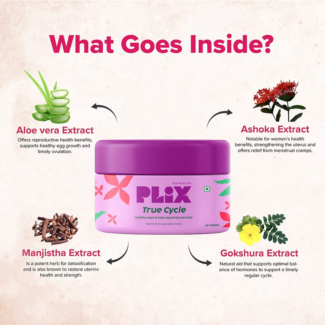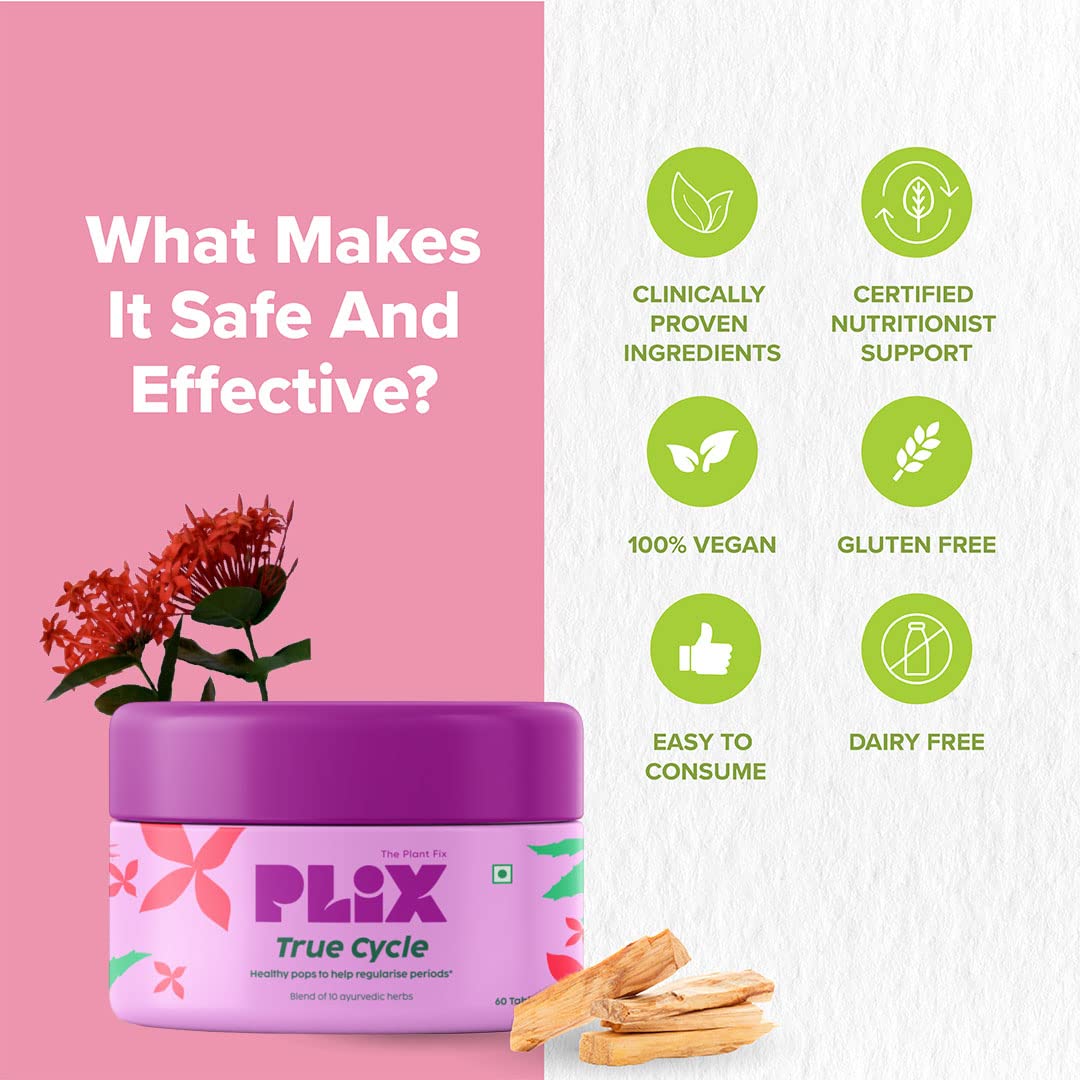 PLIX Women's True Cycle 60 Tablets - Pack of 3 for Irregular Periods | Goodness Of 8 Ayurvedic Herbs & Iron | Vegan Dairy Free Gluten Free