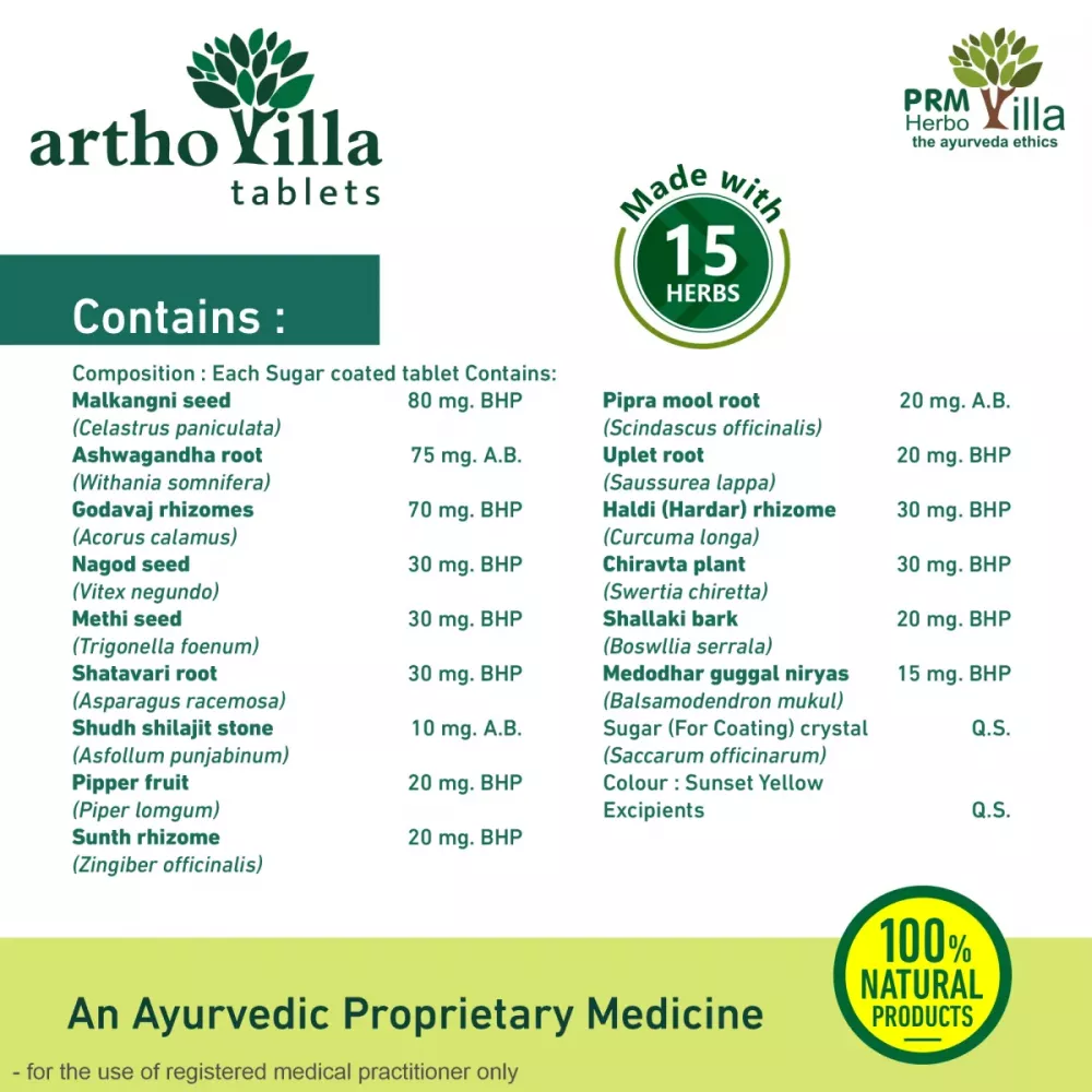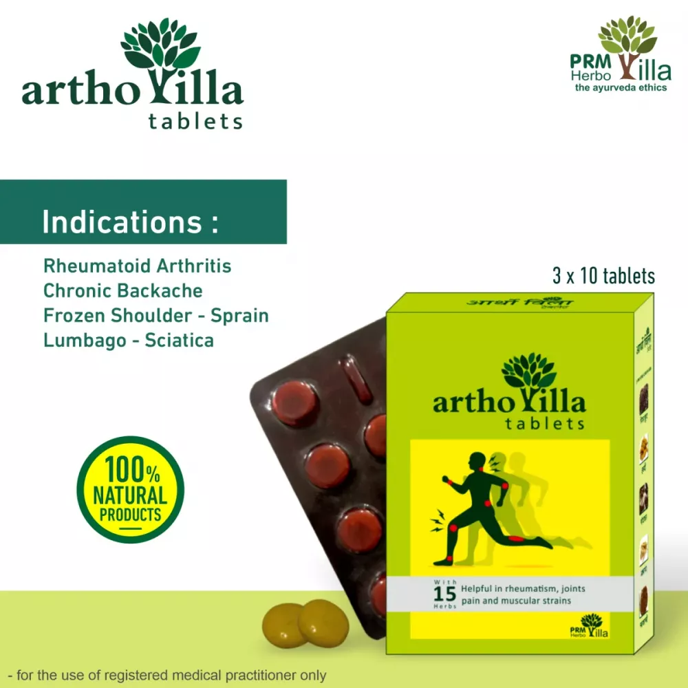 PRM Artho Villa Ayurvedic Arthritis Tablet 30 Tabs (Pack of 2) Reduces Pain & Promotes Flexibility with Methi, Sunth & Ashwagandha